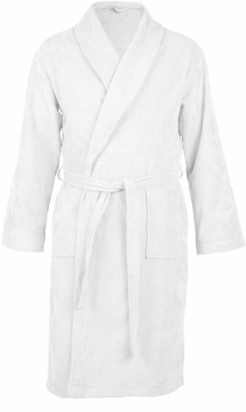 Халат флисовый белого цвета с вышивкой на спине и груди
